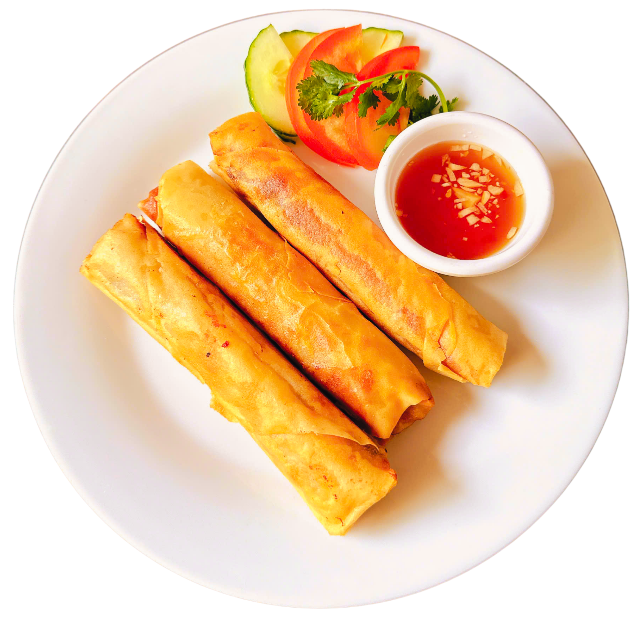Savor the crunch with our delightful Crispy Spring Rolls, bursting with flavor and the perfect balance of textures. Choose between two delicious options: the Pork Spring Roll or the Vegetarian Spring Roll. Each roll is packed with a savory mix of noodles, mushrooms, onions, coriander, and cabbage, all wrapped in a light, crispy shell. Paired with your choice of tangy Salad Dressing or sweet, zesty Sweet Chili Sauce, these spring rolls make for an irresistible snack or appetizer. A true Vietnamese treat, crispy on the outside, fresh and tasty on the inside.