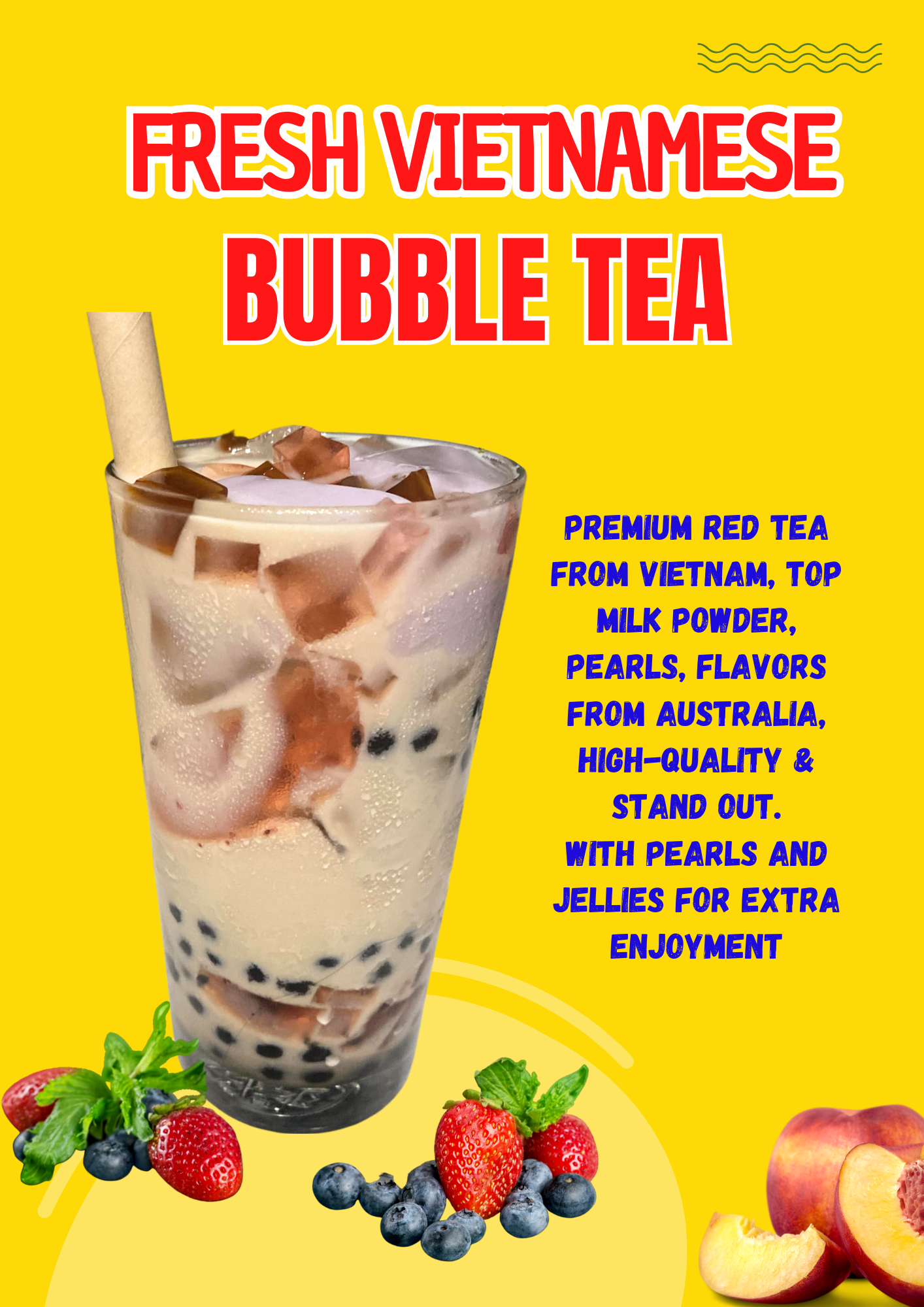 Discover Quality and Flavor from Our Family Business Indulge in the finest homemade treats from our family business, where every creation is crafted with care. Enjoy our irresistible caramel flan, refreshing red tea, creamy milk tea, and our famous milk tea boba and red tea boba. Customize your drink with a variety of boba options including chewy pearls, aromatic taro, silky panna cotta pudding, and delightful fruit jellies. Immerse yourself in a world of flavors with our signature boba choices: from the classic Original and rich Taro to refreshing Mint, decadent Chocolate, sweet Brown Sugar, bold Coffee, earthy Matcha/Green Tea, tropical Melon, and juicy Strawberry. Each sip embodies our dedication to excellence and our love for delivering genuine flavors that will leave you craving more.